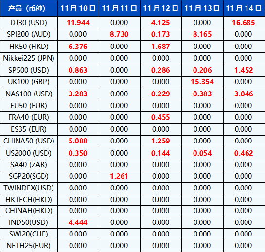 请注意, 以上数据仅供参考,所有数据均以MT4/MT5软件实际执行情况为准。