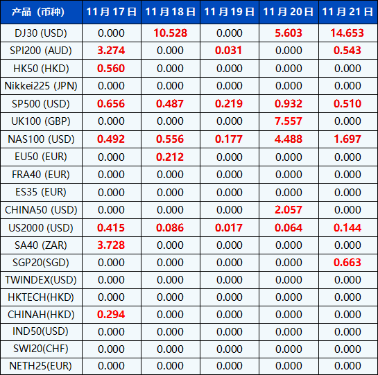 请注意, 以上数据仅供参考,所有数据均以MT4/MT5软件实际执行情况为准。