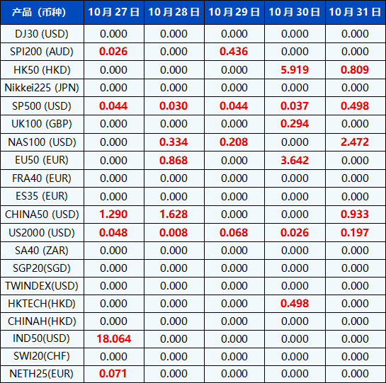 请注意, 以上数据仅供参考,所有数据均以MT4/MT5软件实际执行情况为准。