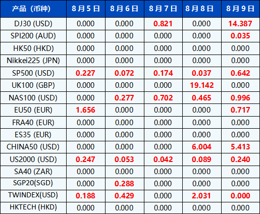 请注意, 以上数据仅供参考,所有数据均以MT4/MT5软件实际执行情况为准。