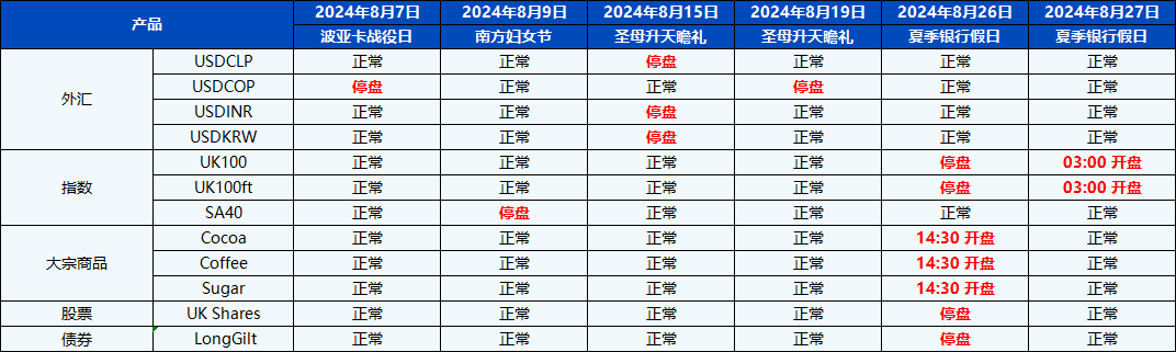 您好,受即将到来的 8月份假期影响,PU Prime的交易时间将有所调整。