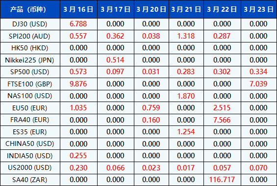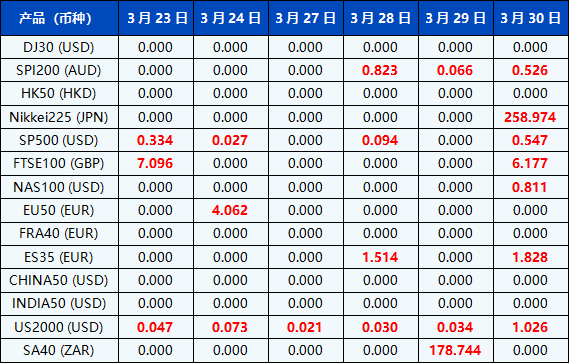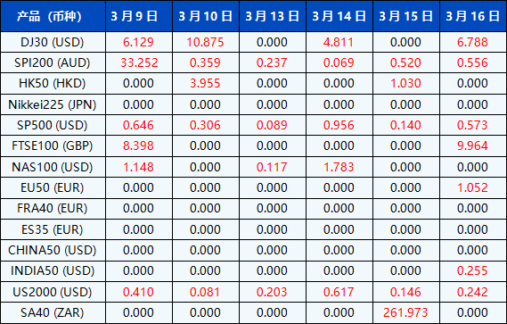 请注意, 以上数据仅供参考,所有数据均以MT4/MT5软件为准。
