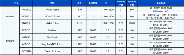 您好,为了更好满足广大客户对产品多元化的需求,PU Prime 将在 2023年3月27日上线新的期货指数和虚拟货币产品。