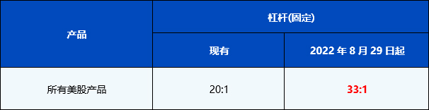 您好,为进一步提升PU Prime的竞争力和优化客户的交易体验, 从2022年8月29日起,所有美股产品的杠杆将进行调整。