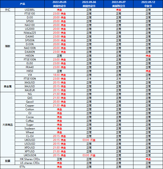 您好,受即将到来的九月份假期影响,PU Prime的交易时间将有所调整。