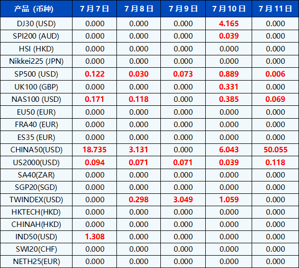 请注意, 以上数据仅供参考,所有数据均以MT4/MT5软件实际执行情况为准。