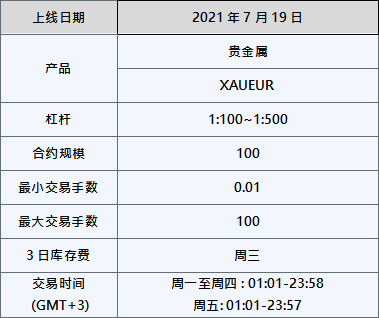 您好,为了更好满足广大客户对产品多元化的需求,PUPRIME 将在2021年7月19日上线新的贵金属产品XAUEUR。