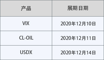 VIX(恐慌指数)、CL-OIL(西德州期货原油)及USDX(美元指数)期货合约的展期时间如下: