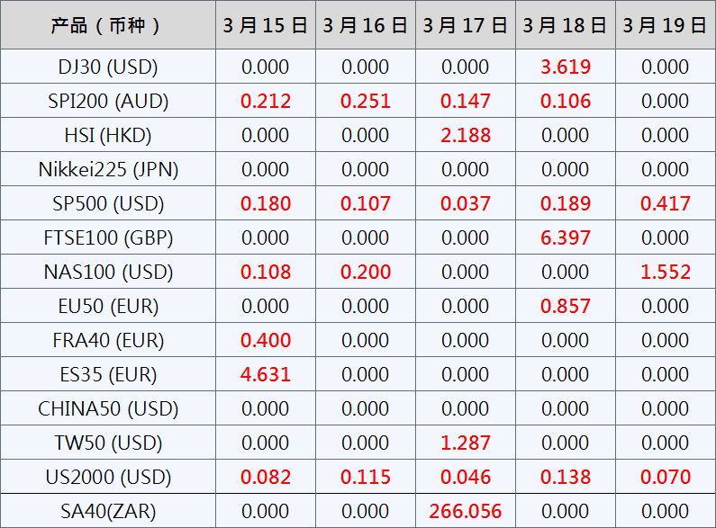 请注意, 以上数据仅供参考,所有数据均以MT4/MT5软件实际执行情况为准