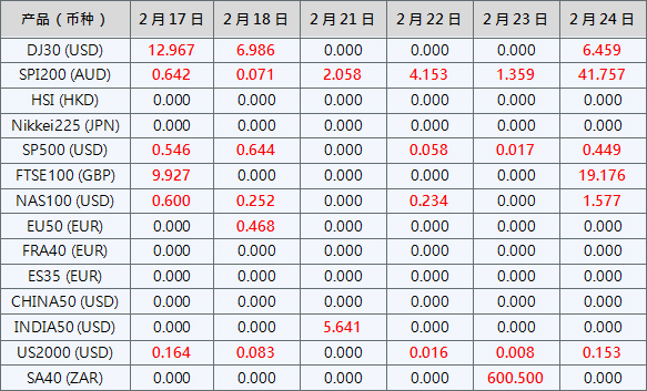请注意, 以上数据仅供参考,所有数据均以MT4/MT5软件实际执行情况为准。