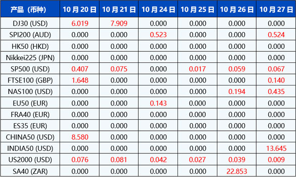 请注意, 以上数据仅供参考,所有数据均以MT4/MT5软件实际执行情况为准。