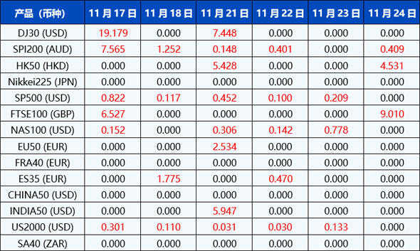 请注意, 以上数据仅供参考,所有数据均以MT4/MT5软件实际执行情况为准。