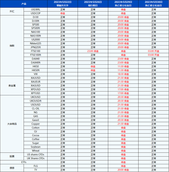 您好,受即将到来的5月份假期影响,PU Prime的交易时间将有所调整。
