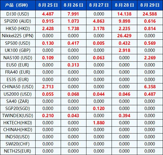 请注意, 以上数据仅供参考,所有数据均以MT4/MT5软件实际执行情况为准。